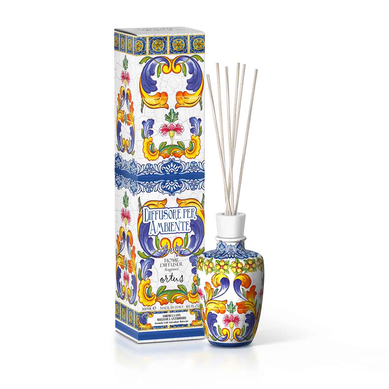 <b>Diffusore per ambiente con bacchette da 300 mL</b></br>Con molecola anti-odore</br><i>La Casa di Rudy</i>