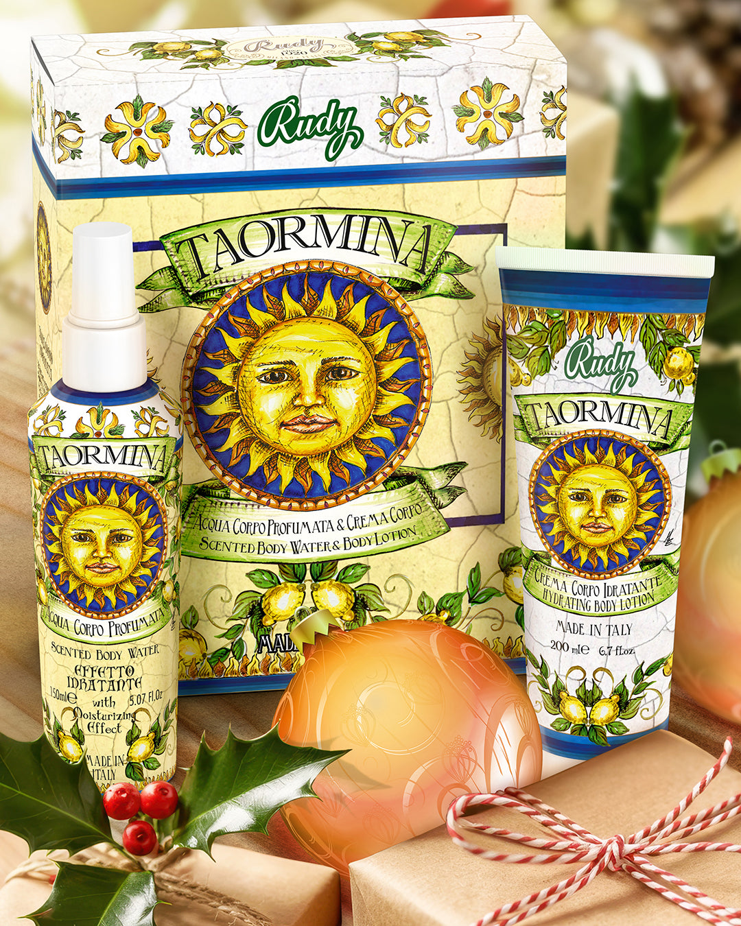 <b>Gift Box with Scented Body Water 150 mL + Moisturizing Body Cream 200 mL</b></br>Le Maioliche di Rudy</br><i>Taormina range</i>